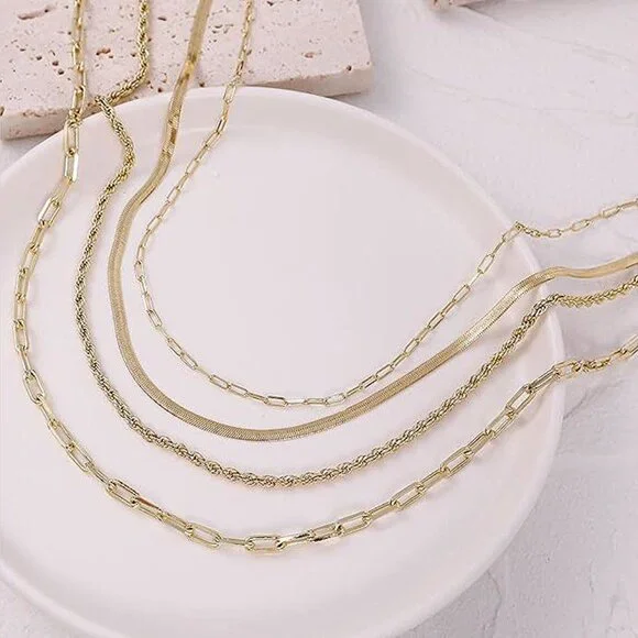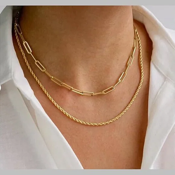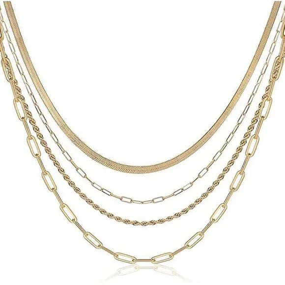 * Layered necklace size: Shorter cuban chain length is 13.8 inch plus 2inch; width of chain is 2.5mm. the second herringbone chain length is 15 inch plus 2 inch extension chain adjustable; width of chain is 3mm. the longest twisted rope chain length is 16.5 inch plus 2 inch extension chain adjustable; width of chain is 2.5mm.Please check the size detail before purchase * Necklaces for women trendy material: Made of handpicked brass, and plated in 14k gold * Stackable necklaces design: We provide with premium necklcae set. With elegant and simple layered design which can be worn with any occasions, make you be the focus at every moment. Each piece in this layered necklace set has an adjustable 5cm extension and can be worn individually, The necklace is easy to wear and take off and will comfortably fit most neck sizes. or you can wear two or three of them to match your outfit * Gold necklace set applicable ocassion: Those dainty necklace can be sent to your friend relatives in festival, it's an ideal gift for women. it also perfect for all dress up and any occassions, Valentine's Day, Wedding, Mothers day, Party, Engagement, Class, Dating, Beach, Home, Office and Daily Life