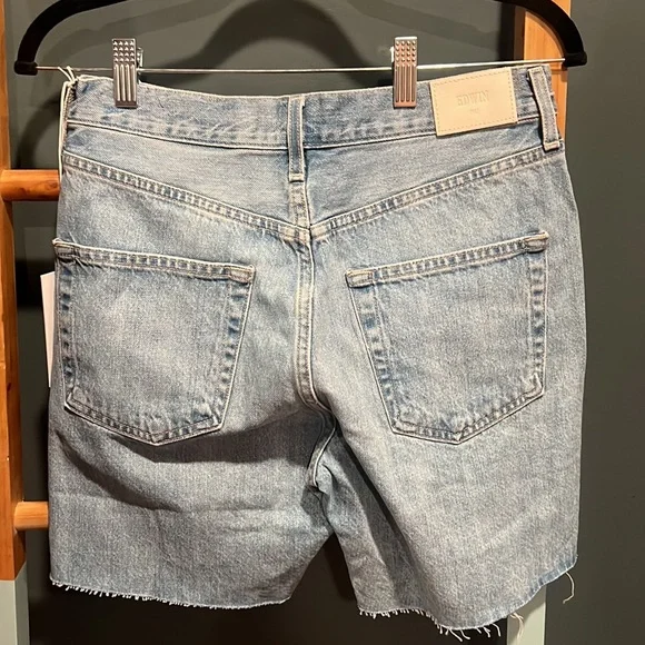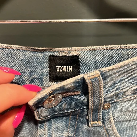 Edwin 7”denim shorts 29 inch waistRetails for $128-$138Sitting at the waist and featuring a longer length hitting mid-thigh, the Cai Short from Edwin is the short you're going to reach for all summer long. Add a simple white tee and a pair of Boyfriend TKEES and your summer look is complete!AGOLDESenseLight Blue Stone WashShortButton flyUndone Hem5 pocket stylingFront rise: 10 1/2"7” InseamLeg Opening: 14 1/2”100% CottonMachine wash cold; Tumble dry lowMade in the USAManufacturer Style No. 3003HBT