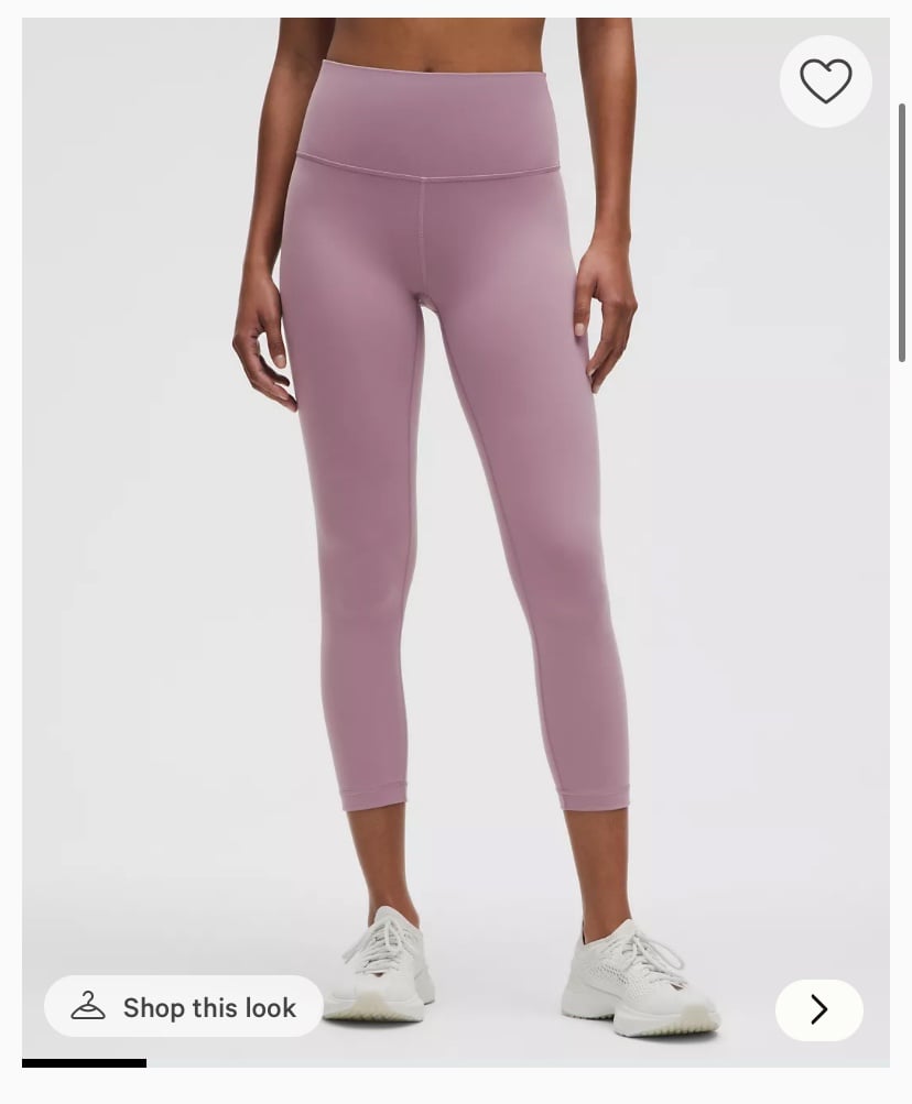 Worn once Lululemon wonder train high-rise crop in 23 inch inseam size 12 color is Lavender Lux. Purchased wrong size and could not return after wearing for one workout. Cleaned and sanitized in excellent used once condition. Please ask any questions before purchasing.